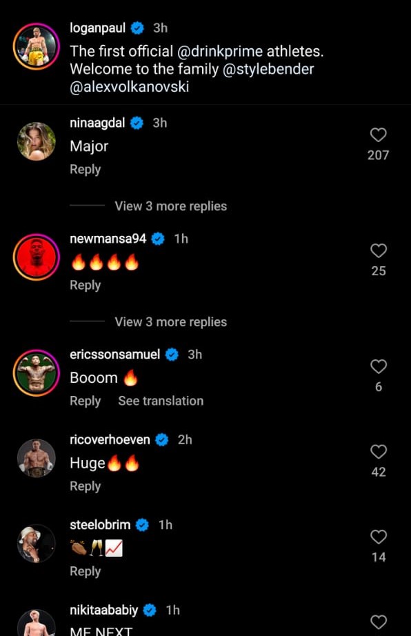 Logan Paul’s Girlfriend Nina Agdal and Others React To The post made by Logan Paul on his Instagram account by saying “major”, while others wrote that the step is huge for prime.